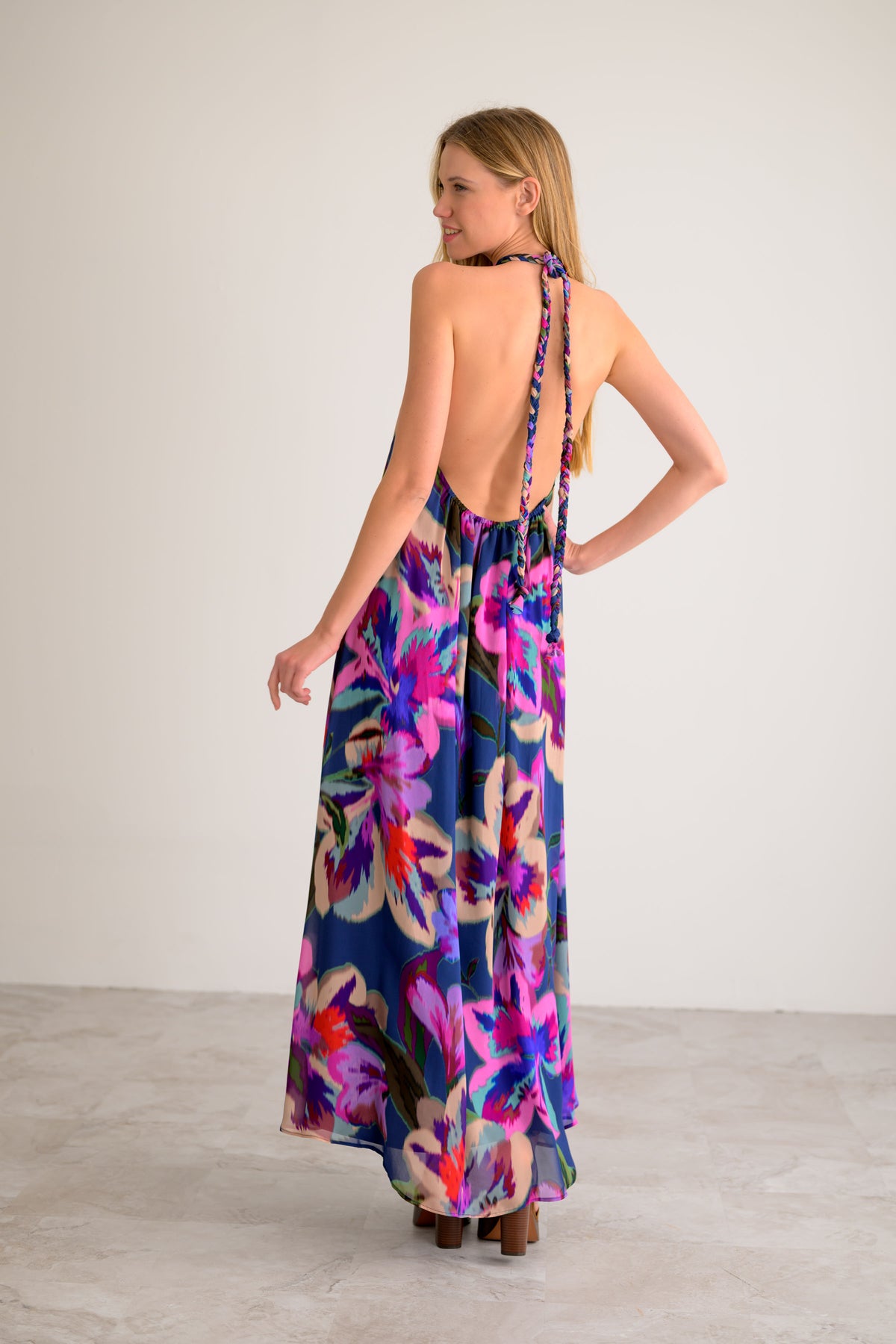 The Antonella Dress captures effortless elegance with its flowing halter maxi silhouette. Featuring a beautifully braided halterneck tie and a striking low back detail, this dress blends sophistication with a touch of allure. Fully lined for comfort and ease, it’s the perfect piece for warm evenings, special occasions, or a getaway wardrobe.